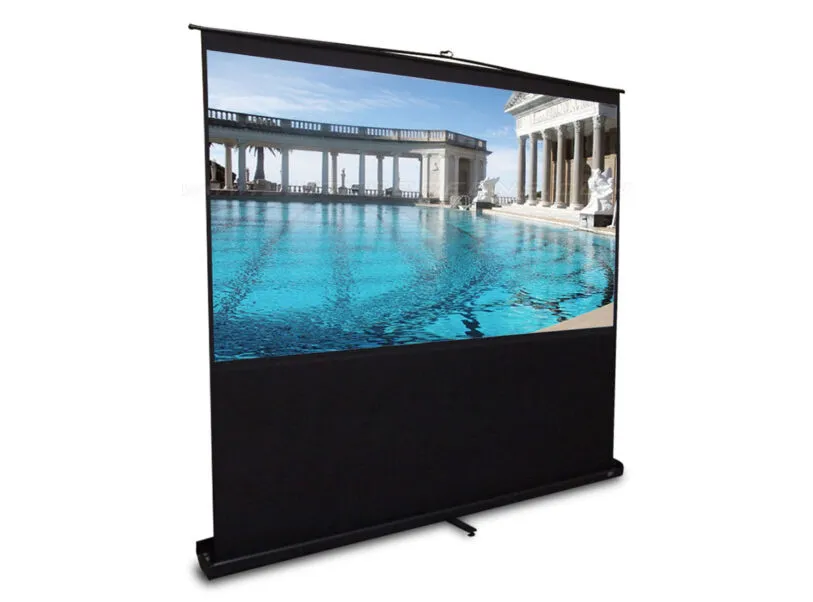 Prachtig en chique projectiescherm met zwarte behuizing die snel en eenvoudig op te zetten is.