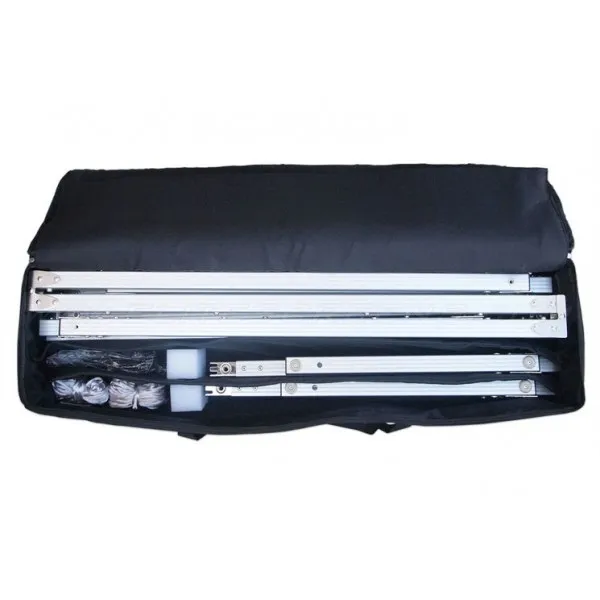 Dankzij het lichtgewicht aluminium frame zet je het scherm binnen enkele minuten op. Het frame wordt eenvoudig uitgeklapt, waarna het projectiedoek strak wordt bevestigd en de poten worden gemonteerd. Hierdoor creëer je snel een stabiele en professionele projectieopstelling.