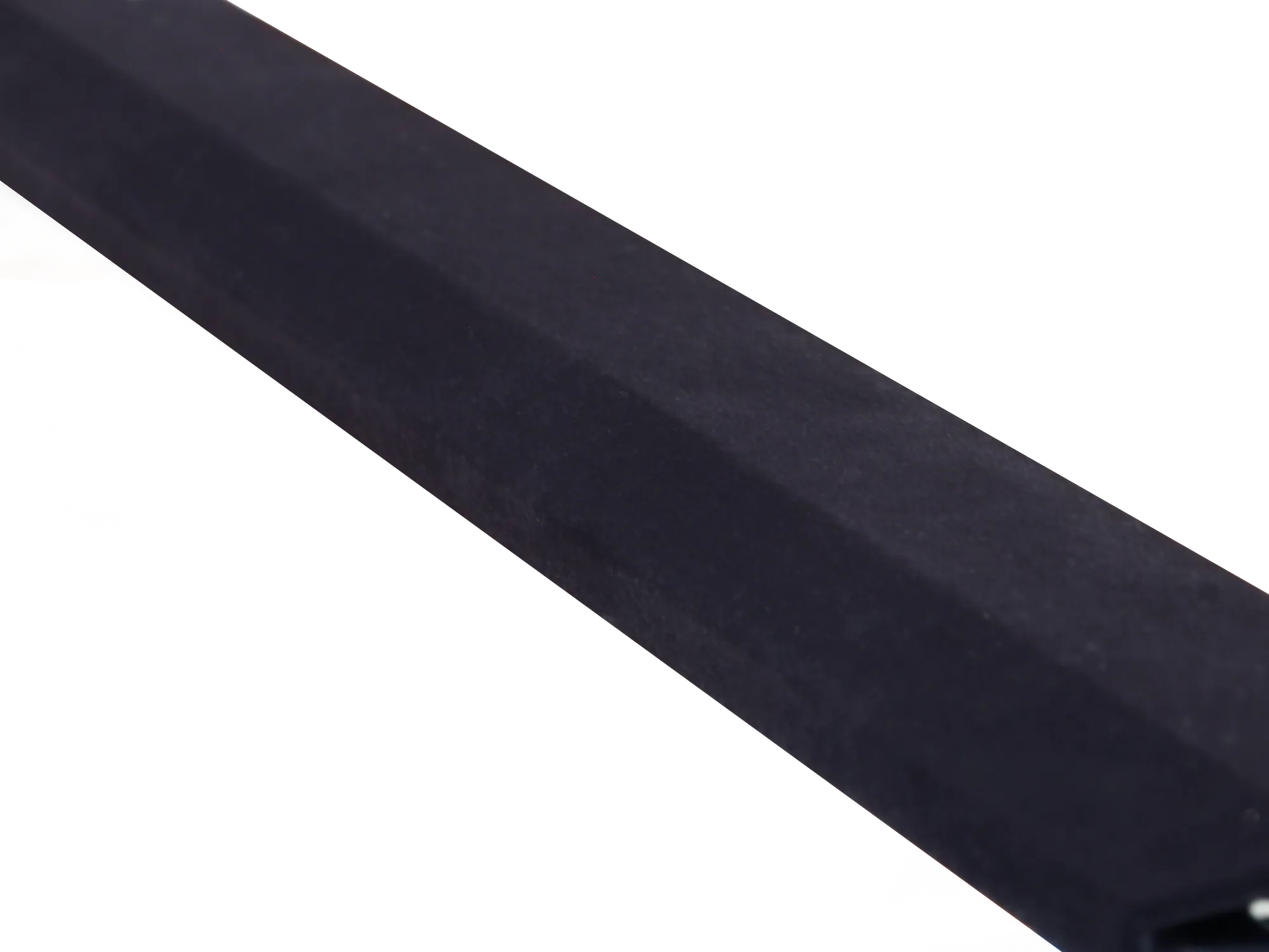 Het scherm is voorzien van een robuust aluminium frame met een zwarte fluwelen afwerking van 6 cm breed. Deze rand absorbeert storend licht en verhoogt het contrast, waardoor je een intensere kijkervaring krijgt.