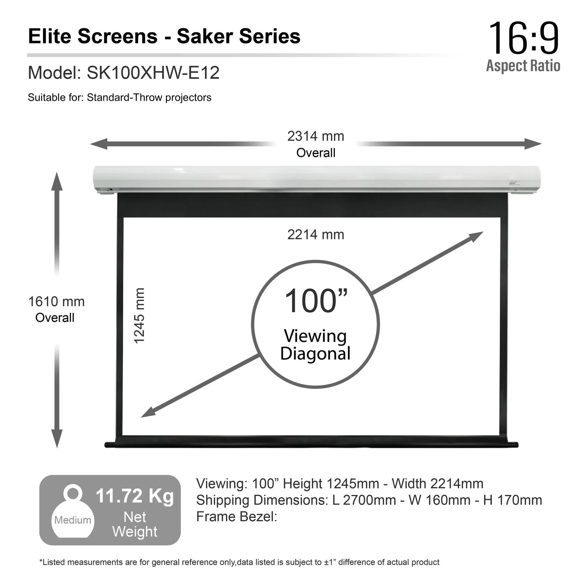 Het Elite Screens Saker Premium SK84XHW-E12 is een elektrisch projectiescherm met MaxWhite® Fiberglass doek (gain 1.1) en een black drop van 30 cm. Het scherm biedt een helder beeld met brede kijkhoek en is geschikt voor 4K Ultra HD en Active 3D projectieLees meer