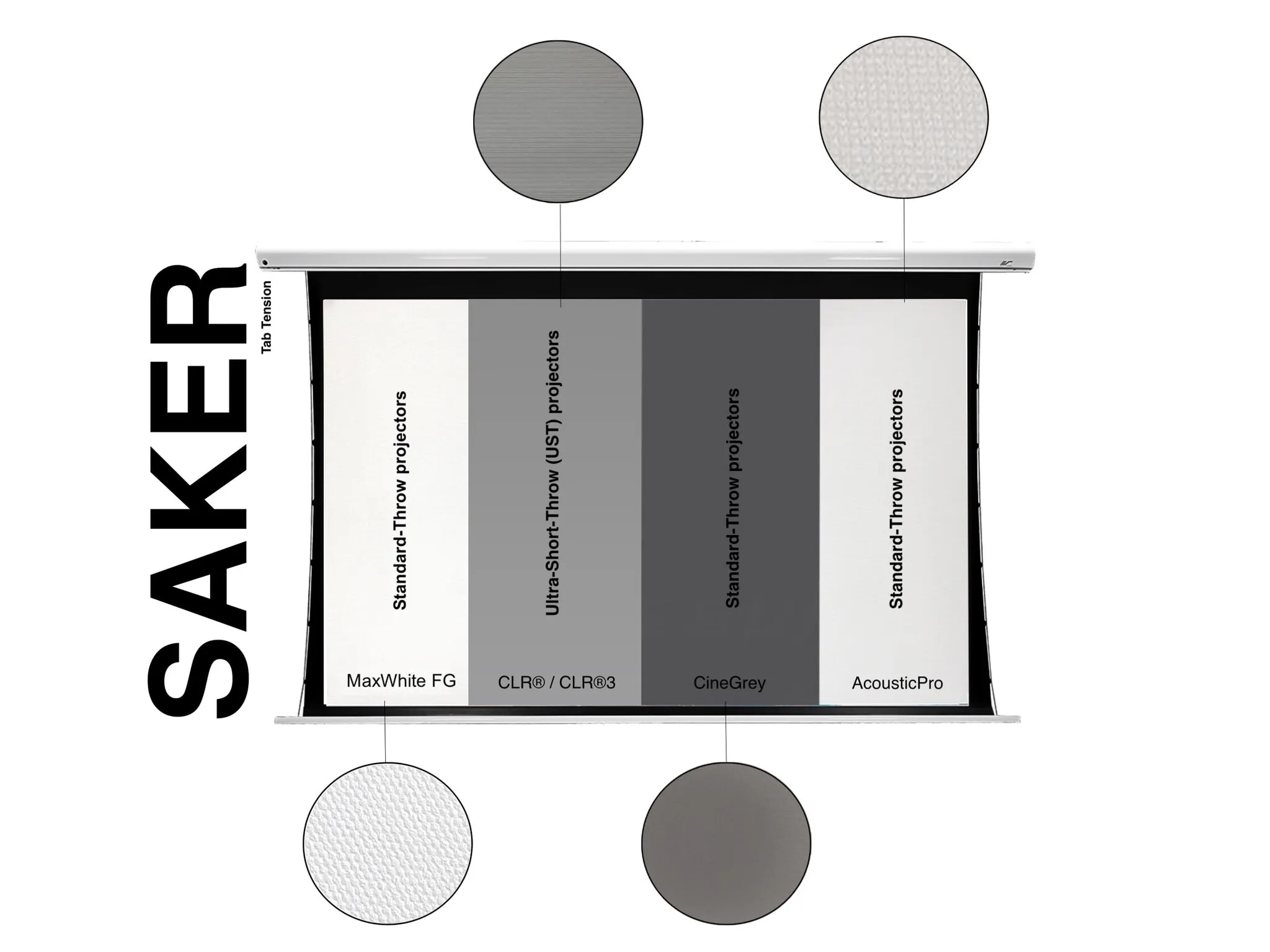 ✔ Tab-tension systeem voor perfect vlak projectieoppervlak