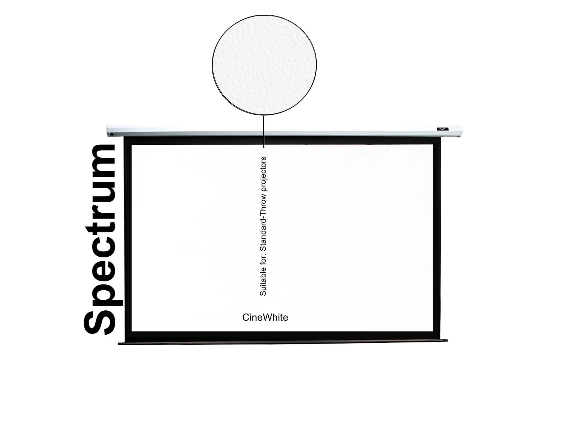Het scherm is uitgerust met het MaxWhite® projectiedoek met een gain van 1.1. Dit matte witte projectiemateriaal zorgt voor een helder en natuurgetrouw beeld met een brede kijkhoek. Hierdoor blijft het beeld goed zichtbaar vanuit verschillende kijkposities, ideaal voor films, presentaties, sport en gaming.