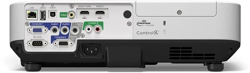 De Epson EB-2250U is uitgerust met een breed scala aan aansluitmogelijkheden, waaronder twee HDMI-poorten (waarvan één met MHL), VGA, USB-A/B en LAN. Daarnaast is draadloze projectie mogelijk via optionele Wi-Fi (met de Epson ELPAP10 adapter). Zo kun je eenvoudig presenteren vanaf een laptop, tablet of smartphone, zonder kabels te hoeven gebruiken. Ook Miracast en Epson iProjection worden ondersteund, wat zorgt voor een flexibele integratie met moderne mobiele apparaten.