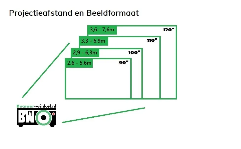 | Beeldformaat | Afstand beamer tot scherm* |