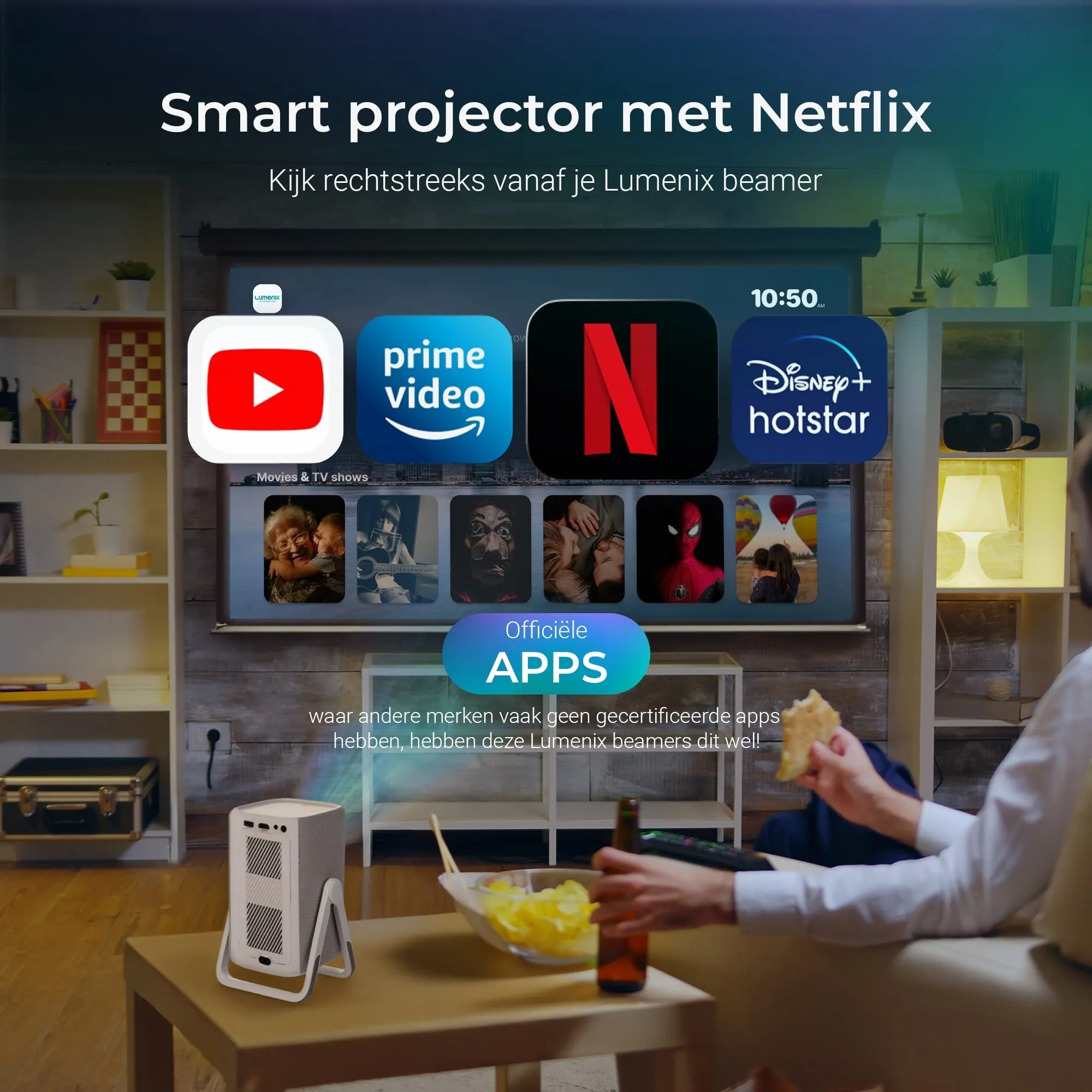Lumenix AIR – Full HD 1080p Draagbare Smart Beamer met 500 ANSI Lumen en Movin OS 2.0