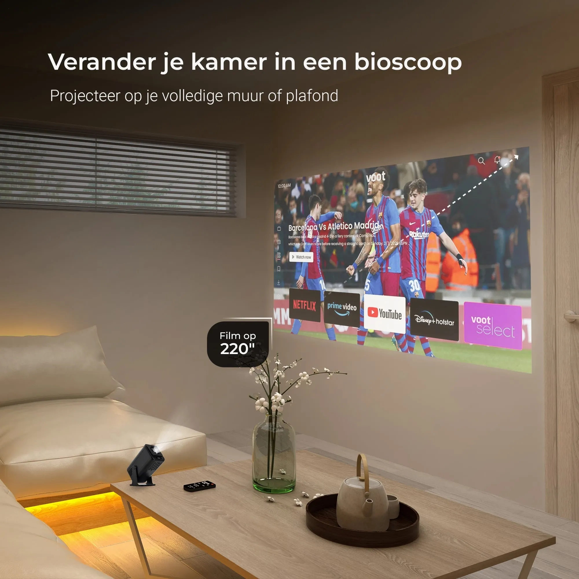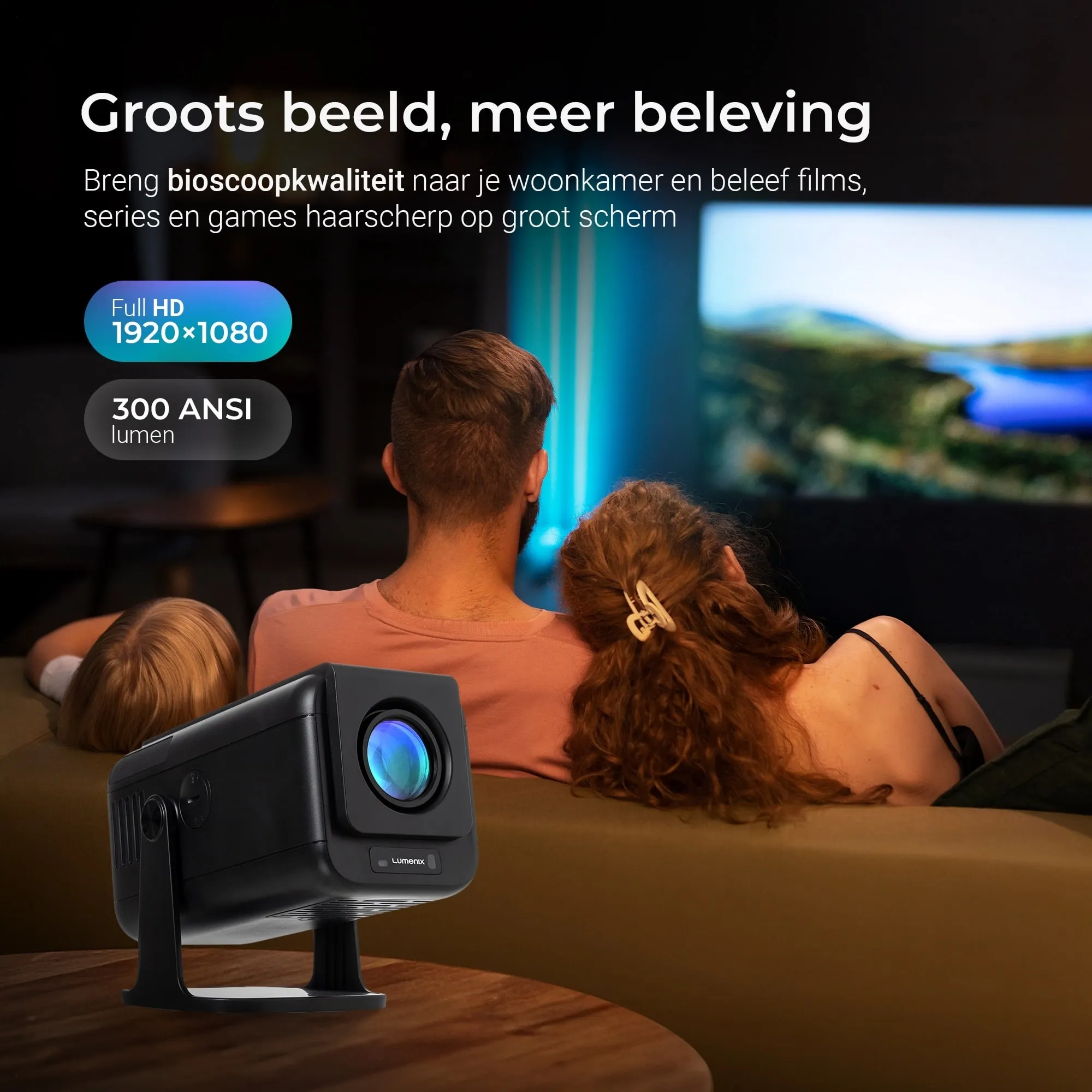 Lumenix NEO – Full HD 1080p Smart Mini Beamer met Android 13 en Stofvrij Ontwerp