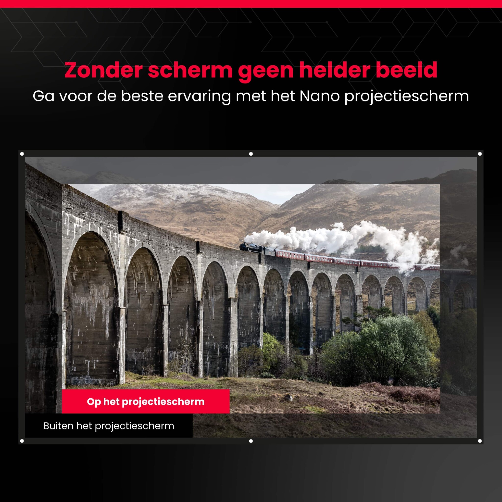 Matte witte oppervlakte voor scherpe kleurweergave en hoog contrast. Eenvoudig te bevestigen met meegeleverd montagemateriaal. Compatibel met vrijwel iedere projector en wasbaar.