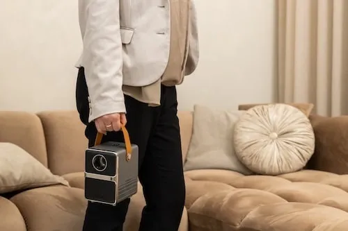 Compact & draagbaar ontwerp met handige draagriem. Ondersteunt Full HD (1080p) resolutie, tot 150 ANSI lumen helderheid en een projectiegrootte van 30–150″. Aansluitingen: HDMI (o.a. PlayStation, Chromecast, laptops), AUX (voor externe speakers), USB. Levensduur van de LED‑lamp: tot 30.000 uur.