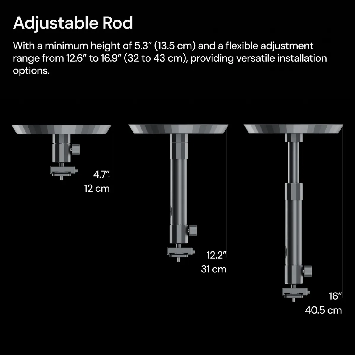 Verstelbare hoogte tussen 12 cm en 40,5 cm dankzij de meegeleverde verlengstang.