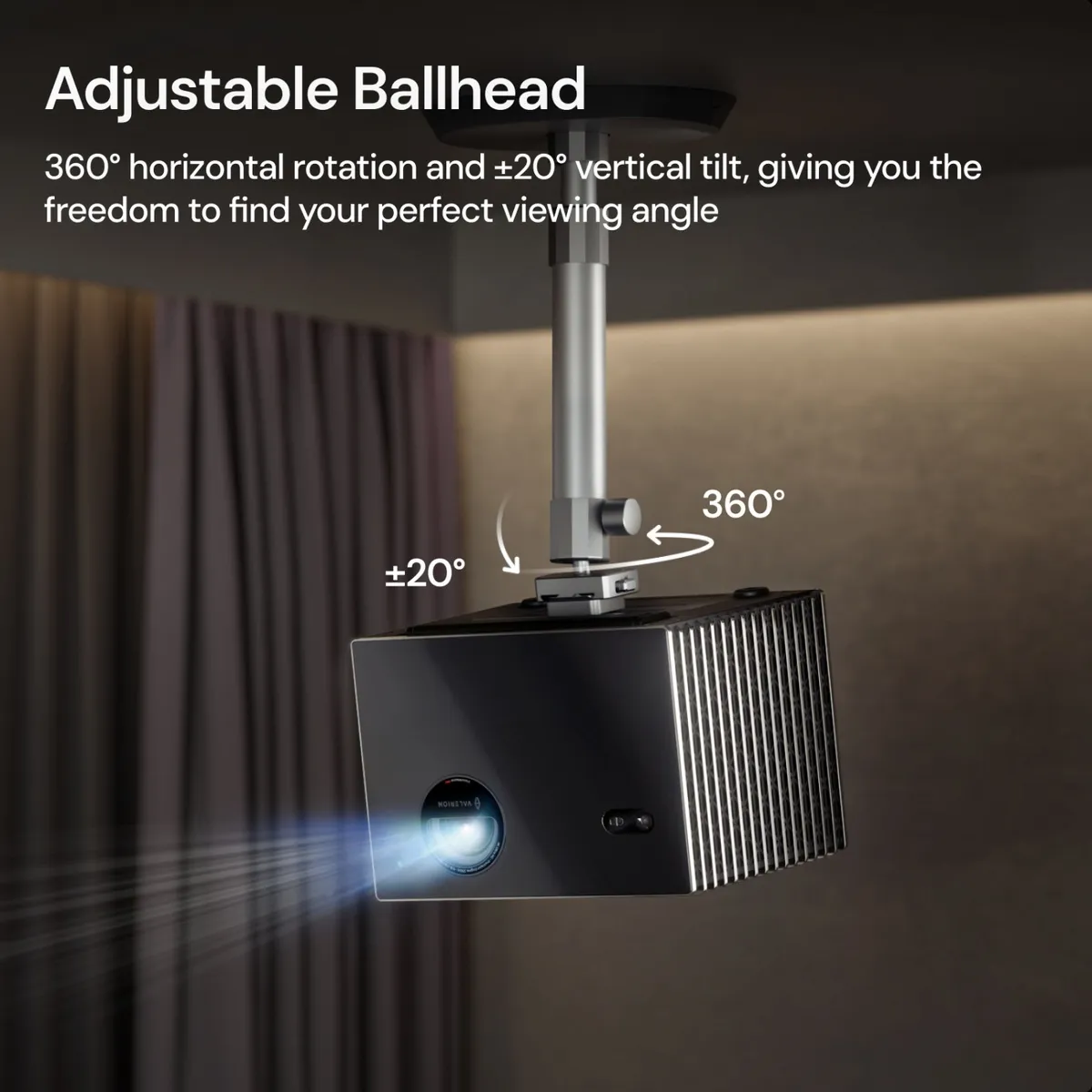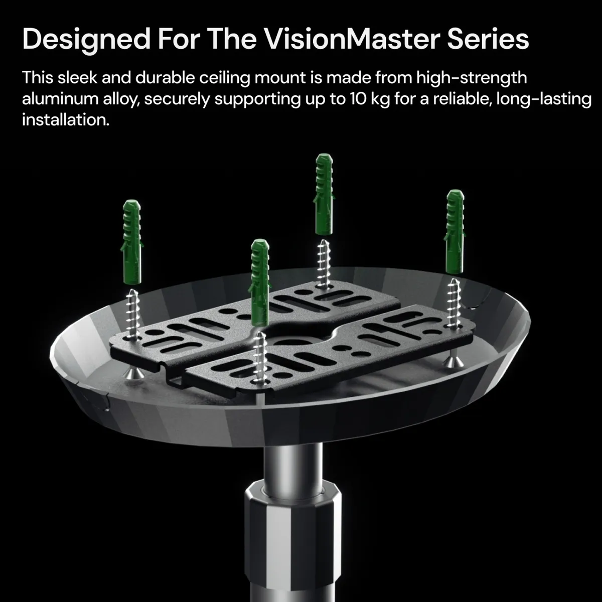 De mount is vervaardigd uit een hoogwaardige aluminiumlegering en ondersteunt projectoren tot 10 kg. Hierdoor is hij geschikt voor zowel compacte modellen als grotere premium projectoren binnen het Valerion-ecosysteem. De combinatie van aluminium en een PC + ABS afwerking zorgt voor een stevige constructie met een moderne uitstraling.