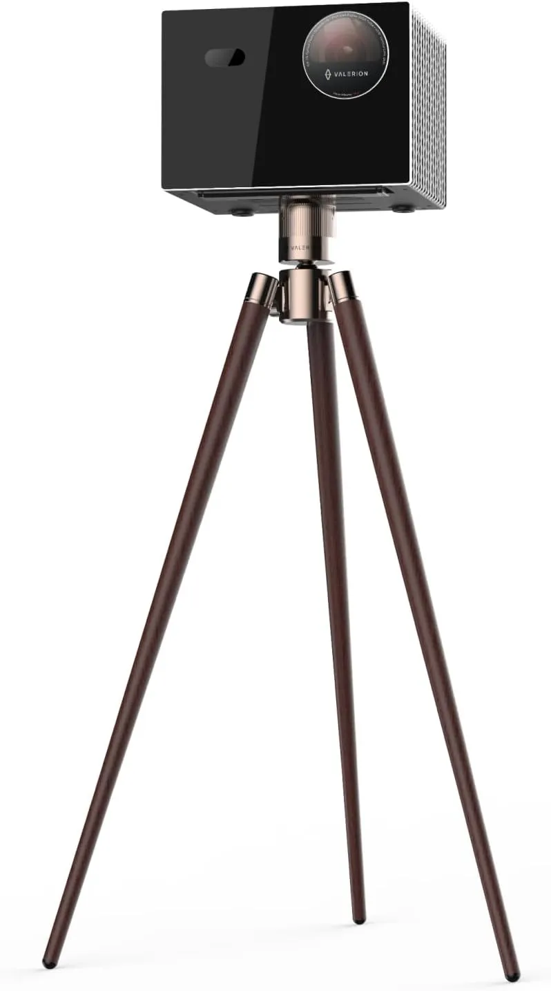 De Valerion Walnut Tripod Stand combineert elegantie en functionaliteit voor iedereen die een hoogwaardige, draagbare projectoroplossing zoekt. Deze tripod is ontworpen met walnoothouten accenten en een robuuste aluminiumlegeringbasis, waardoor hij zowel een premium uitstraling als uitzonderlijke stabiliteit biedt. Met een draagvermogen tot 10 kg ondersteunt de stand de meeste beamers en projectoren, waaronder modellen uit de VisionMaster- en StreamMaster-series.